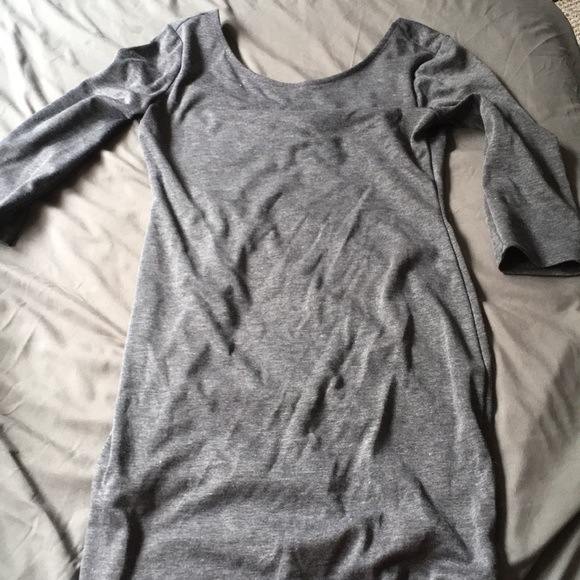 This is a grey dress that is very comfortable! Awesome condition and is a great dress for many events! The back is the side that cuts out!