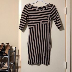 Tan & Black Striped Mini Dress w/ Front Pocket
