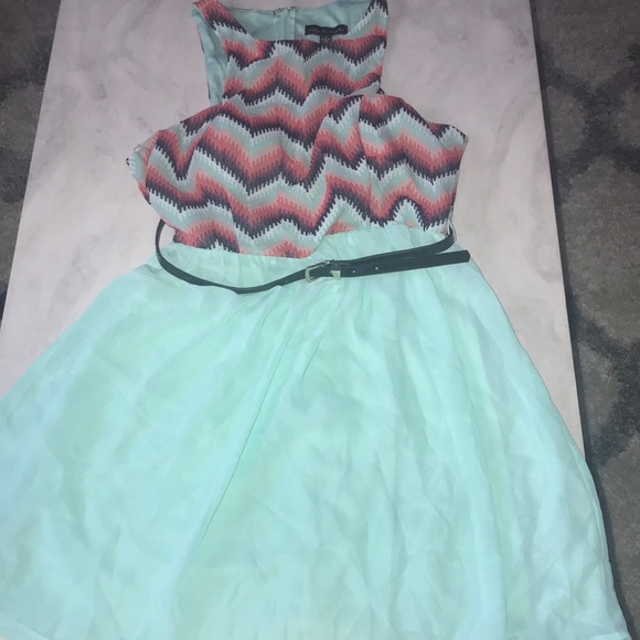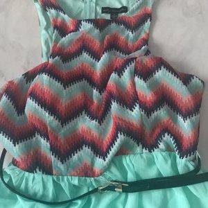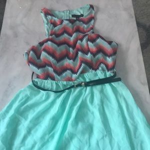 Tiffany green/blue dress with colorful pattern. Brand new !