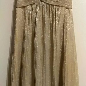 Strapless gold shimmer long bridesmaids gowns. Only worn once.
