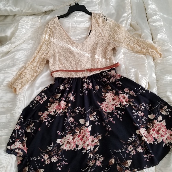 Floral print dress with belt. Medium length sleeves. Worn once.