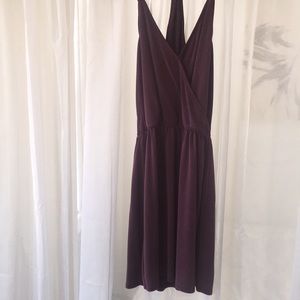 Dark purple dress. Front crosses and the back turns into a Razorback