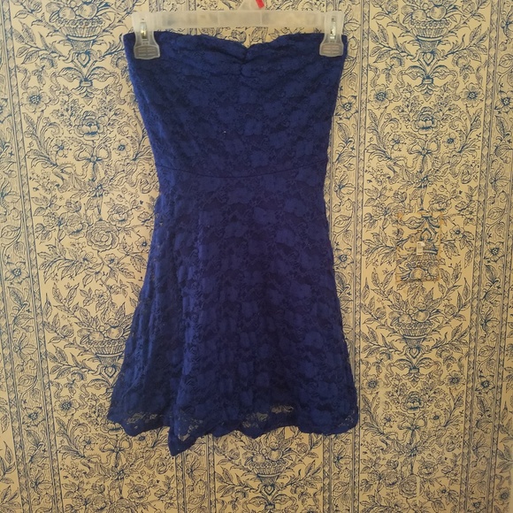 Lace blue dress, blue slip attached underneath.