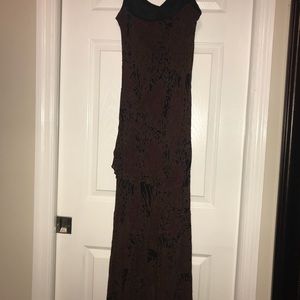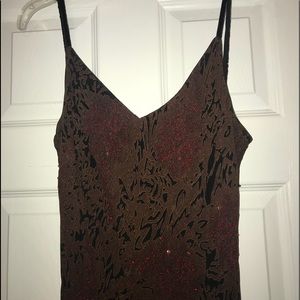 Long spaghetti strap dress with beautiful beaded accents in the design. Great for a wedding, date night, or fancy event. Hardly warn and in great condition.