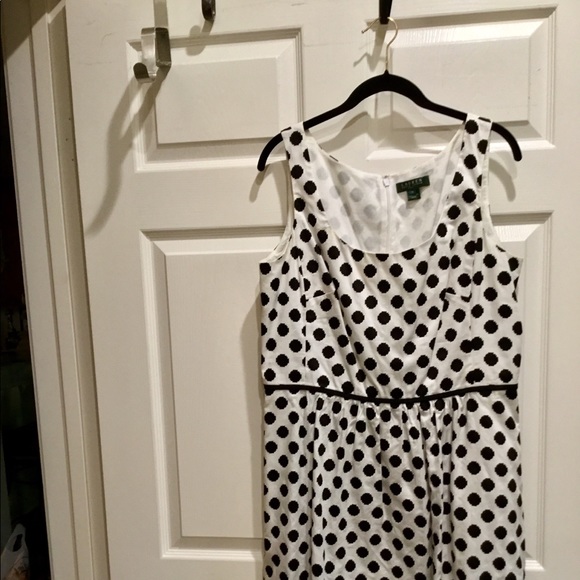 Black and white summer dress, casual to evening wear, can be dressed up or down with the right shoes & jewels. Round med scoop neck, sleeveless, zipper in back. 100% cotton. I’m 5’ 3” tall hits at knee. Purchased while on holiday from Dillard’s in Hollywood Florida. Worn in Florida to After Party final screening of TV Series The Glades.