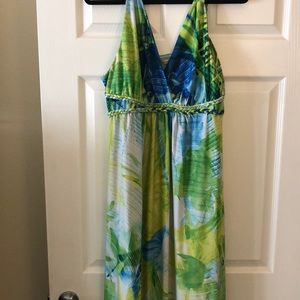 Colors: green, royal blue, sky blue, like green, white. Rope in silver under bust
