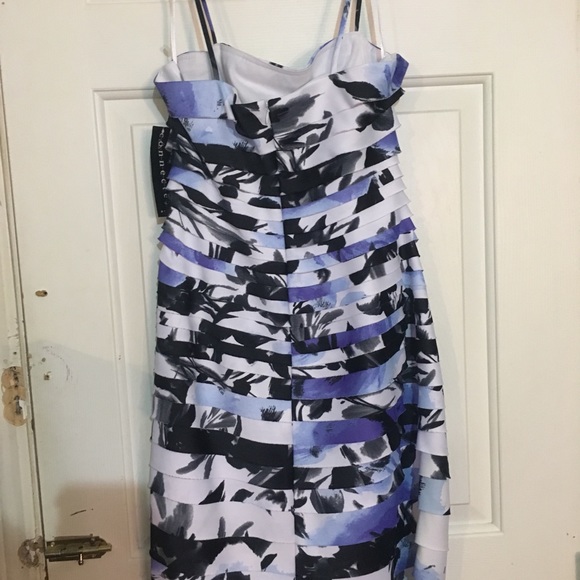 It’s very slimming fitted dress with white and blue floral print
