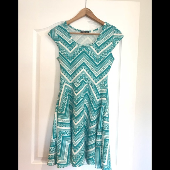 Short white and turquoise dress, you can wear with sneakers or heels πππππ