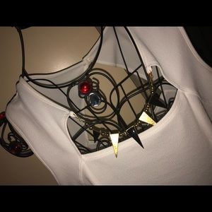 Black and white short sleeve dress with open neck and back