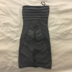 Silver dresses with faux leather details