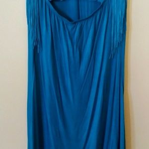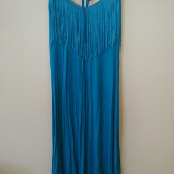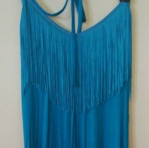 Cristinalove teal knee length halter dress with fringe never worn NWT size S