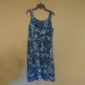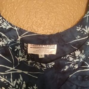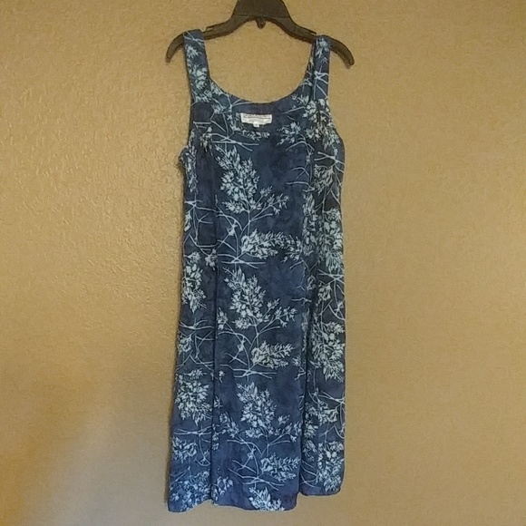 Eagle Ray Traders Designer dress with pockets and ties in back. Dress is slight dark tie die and is blue and white..( has no purpke in it). Super comfy dress. Only tried it on..Never worn. Can fit small to medium and possibly large. Made in Indonesia.