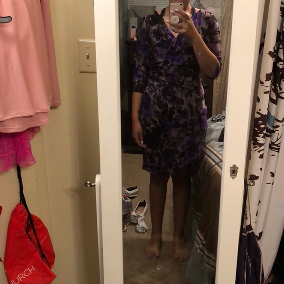 Beautiful work dress with ruching on one side to create a slim waist