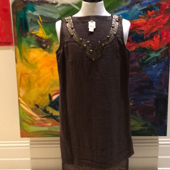 Great linen dress with Bronze accessories