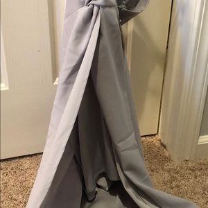 Grayish violet dress with thigh high slit on the side and crosses in the back