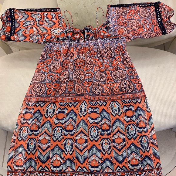 This dress is unique and one-of- a-kind in print and in style: "Tribal Meets Paisley" in this beautiful dual style print; AND, "Cold Shoulder and Spaghetti Strap" dress. You can only choose right with this dress if you like being unique.
