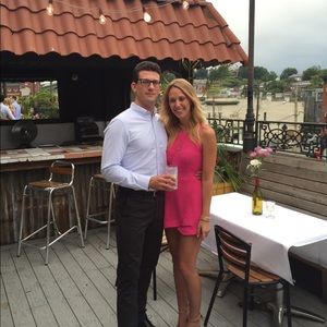 Great condition. Only worn once. Fun hot pink dress. Looks like dress in front and shorts in the back.