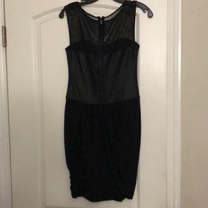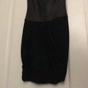 Beautiful and sexy black dress for any occasion birthday parties, wedding. Black soft imitation leather in the middle. Back zipper
