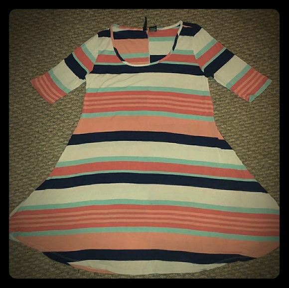 Striped peach, light blue,black and cream colored loose fitting dress