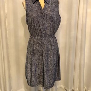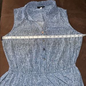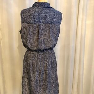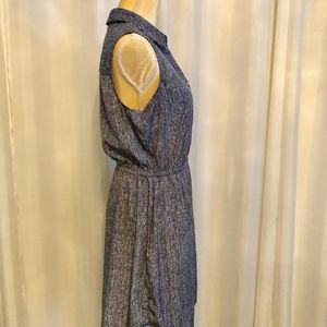 Pre-loved, like new condition. Sleeveless, collared v-neck with 4 button placket, elastic waist, lightweight polyester fabric.