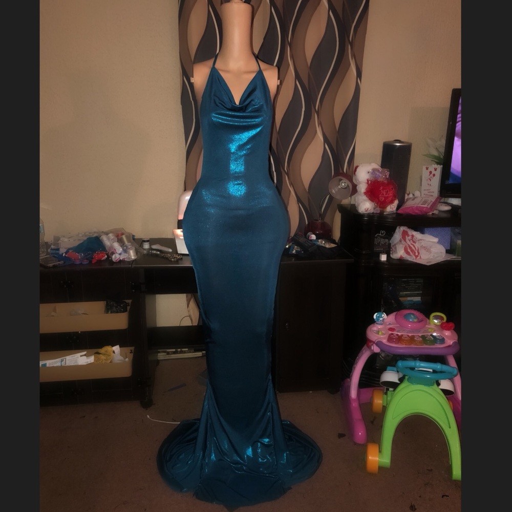 Evening gown prom dress. Custom made by me. Very elegant and classy. Dress has a lot of stretch to it. Can fit a six xxs,xs,or small
