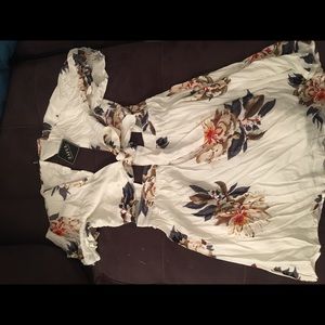 White floral dress open back and tie in front. Tag still attached. Never worn.