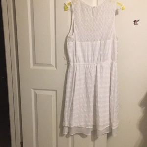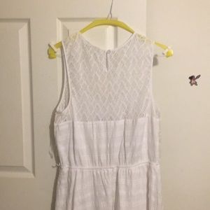 White dress. Keyhole button closure. Petticoat lining. Mesh top. Rubber waisted. No rips, stains, tears.