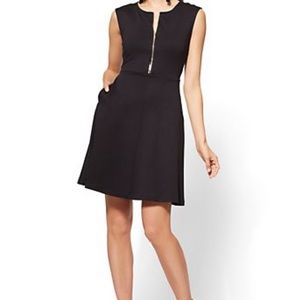 A fresh twist on a favorite look: a zip accent makes an edgy style statement on our most-loved (and always flattering) fit & flare dress.