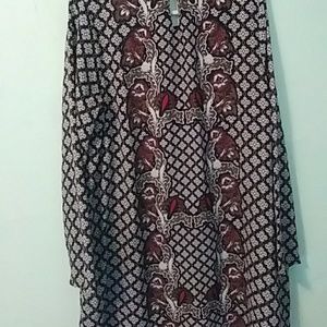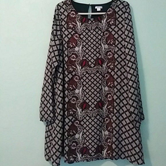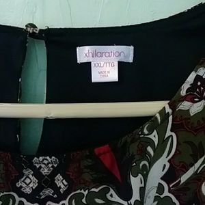 Fully lined 100% polyester A-line dress dark green red and beige pattern