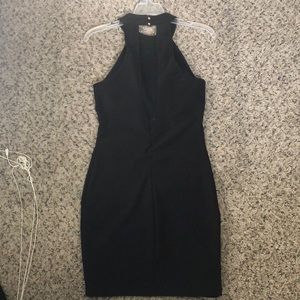 Black, form fitting dress, small mesh sides, high neck, worn once and great condition!