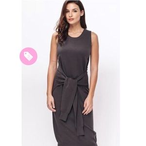 Sleeveless wrap & tie sweater midi dress, is the perfect dress all year round. Pair it with a moto for an extra chic look!