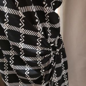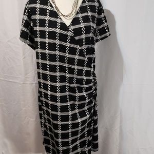 Black & white crossed dress with ring on the side. 39 in long from shoulder. 95% polyester 5%spandex fits like a 2x. [D002]