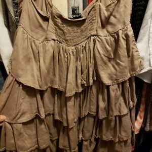 Brown flowy layered spaghetti strap dress