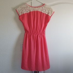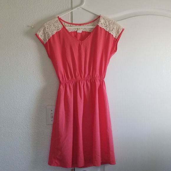 Salmon colored dress. Not sure of size as the tag is pretty faded, I would guess a small or medium. It's about knee length on me & I'm 5 foot 5.