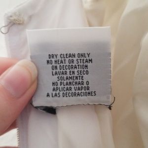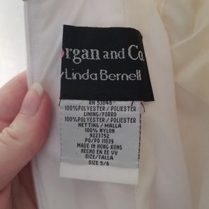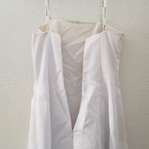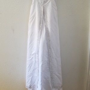 Long, white, beaded, strapless, zip up, prom/wedding dress. Needs to be cleaned but in otherwise great condition.
