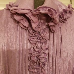 Brand New Ruffled Dress. Gorgeous in person. Lilac color. Snap buttons collar 2 ways to wear.