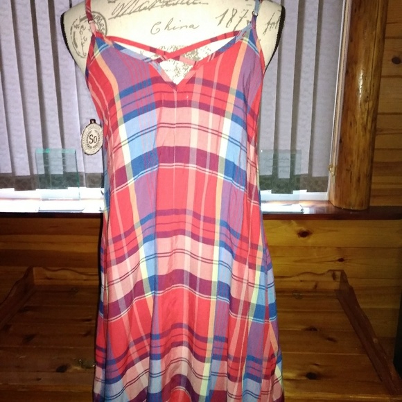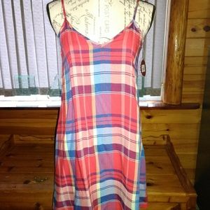 Cute little summer dress with criss cross in the chest area. Very cool and comfortable. Made of 100% Rayon. Size small.