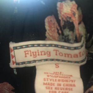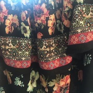 Floral autumnal print, off the shoulder with a belled sleeve. Looks great with boots. Worn once to a wedding.