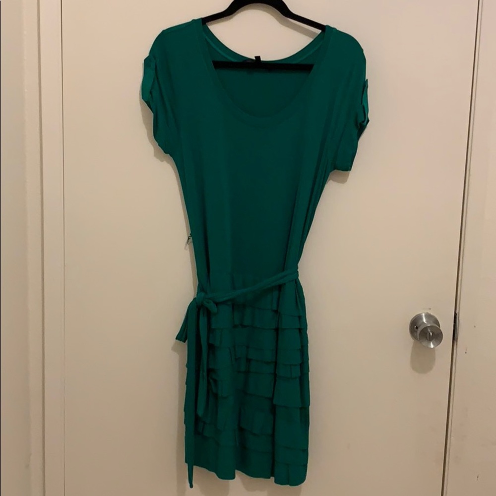 A cute BCBG MAXAZARIA in size medium! Rarely worn, however the thin string where the cloth belt loops through on the right is ripped. Easy fix though!