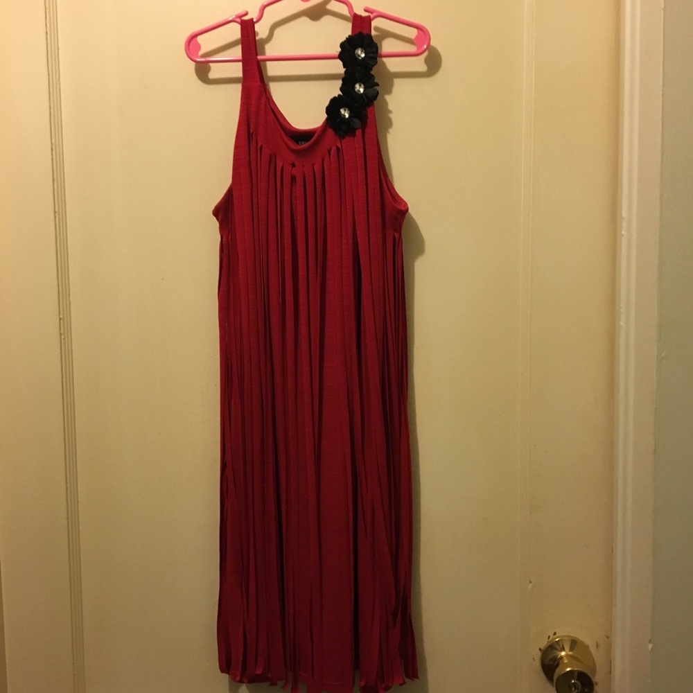 Red dress with black flowers at the top