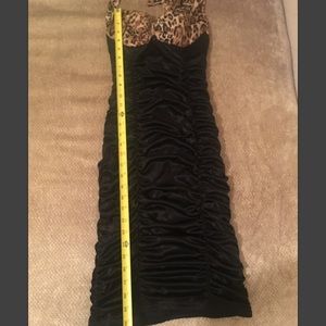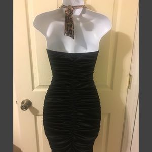 Cheetah / leopard print and black halter dress. Size xs. Look at photos for measurement specifics!