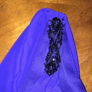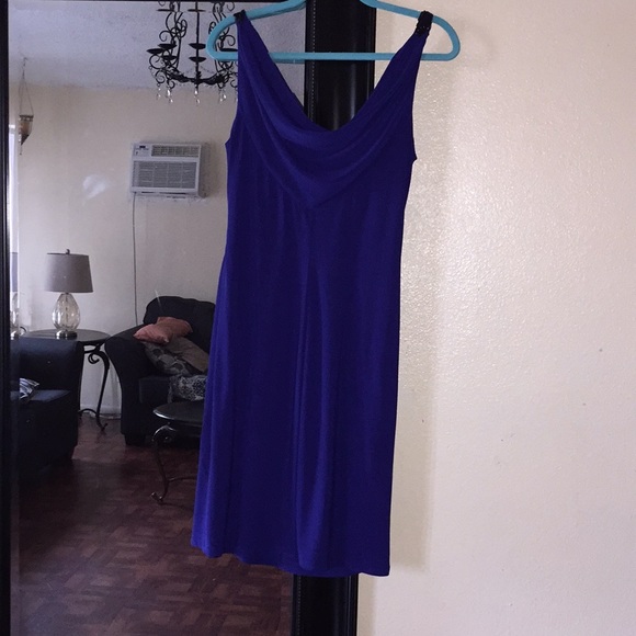 sexy and discreet dress in blue your skin will enhance with this color the drape that has in front will sharpen your silhouette and the crossing of the neckline will make you feel sexy has some applications on the shoulders and behind the neckline hangs the length is above the knee