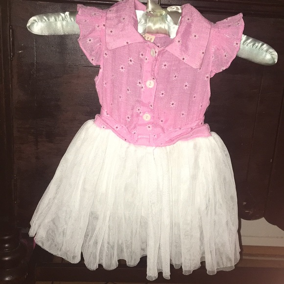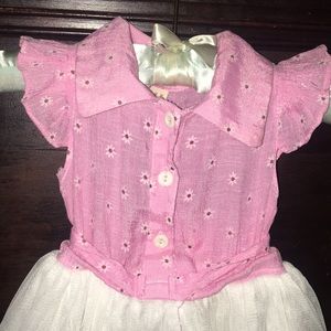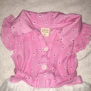 Soft pink bodice with petite flowers 🌸 Soft tulle skirt Ruffle on top Tie back Button front
