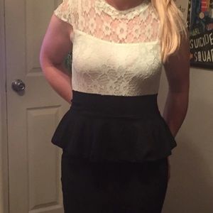 A light green flower laced at the top and black at the bottom dress. It’s a size small and it great condition!