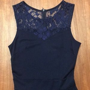 Size XS. Navy blue. Lace on top. Flowing bottom. Comfortable to wear. No damage! Great condition.