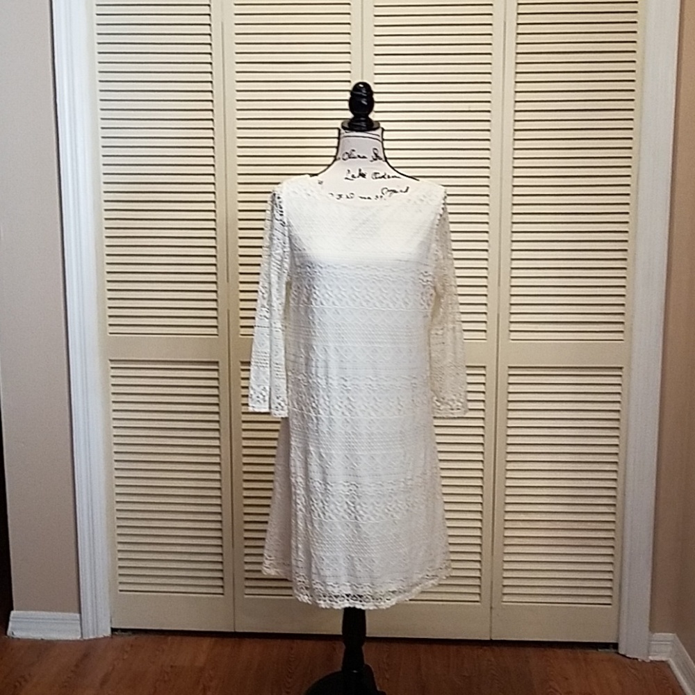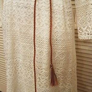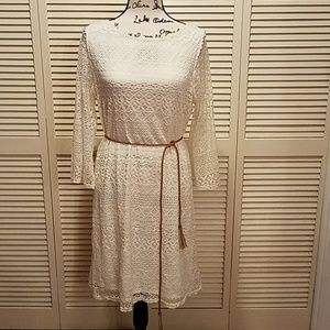 Off White lace dress, worn once , with any type of belt or just the dress , picture shows the belt that came with the dress .