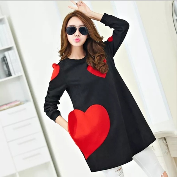 new spring Korean medium sleeved loose fitting dress with heart side pocket.