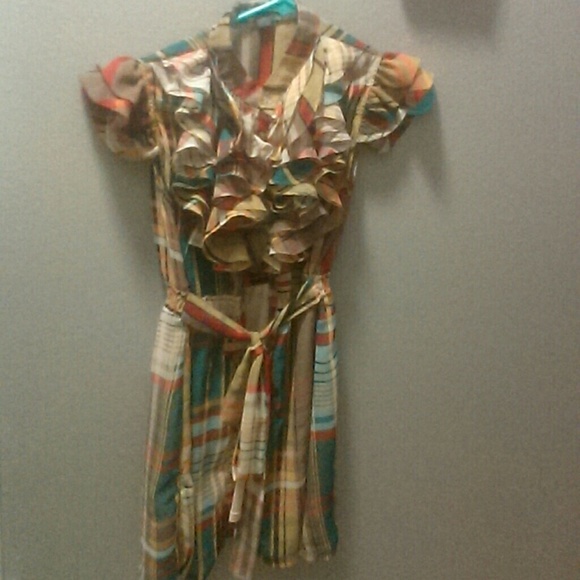 It has big ruffles on the top and has tie so that you can rap it around your waist and has different type of colors.