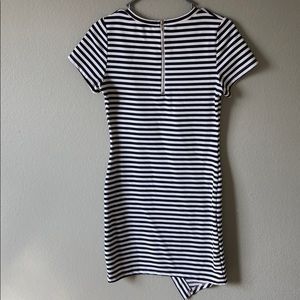Black and white striped dress. Not long but not short height.