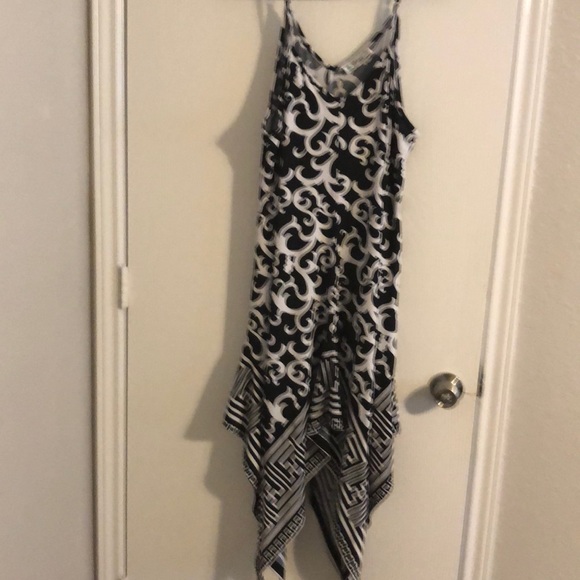 T strap dress black and white